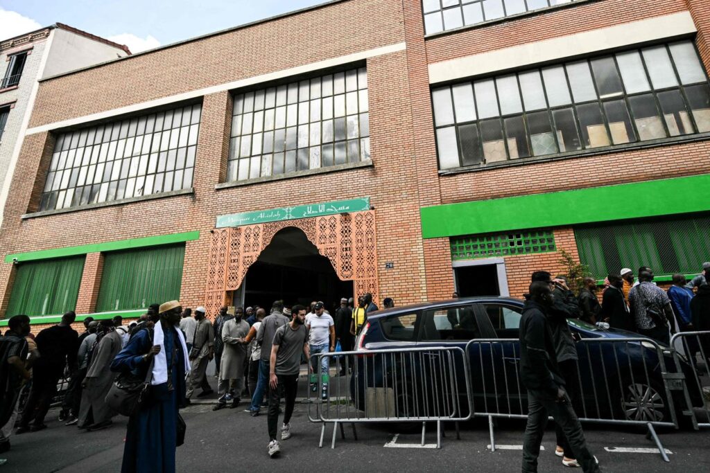 Faithfuls leave the Mosque Islah, in Montreuil, Seine-Saint-Denis, on the outskirts of Paris, on September 9, 2025, as earlier in the morning pigs’ head, were
