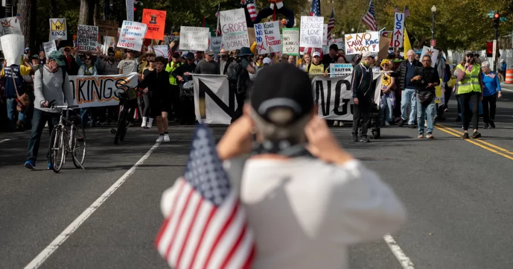 Protestos em Washington, DC. Foto: Bloomberg Foram 2,7 mil manifestações contra a agenda política de Donald Trump, em atos batizados como “No Kings”, que espalharam-se