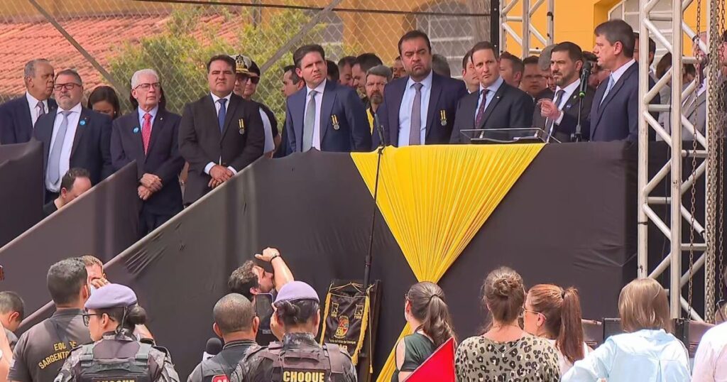 O governador de São Paulo, Tarcísio de Freitas (Republicanos), elogiou nesta segunda-feira (1°) a megaoperação que deixou 122 mortos nos complexos do Alemão e da