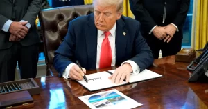 O presidente Donald Trump afirmou que não vai impor tarifas sobre produtos de nações europeias que se opõem à