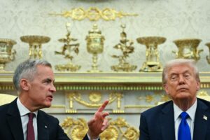US President Donald Trump meets with Canadian Prime Minister Mark Carney in the Oval Office of the White House