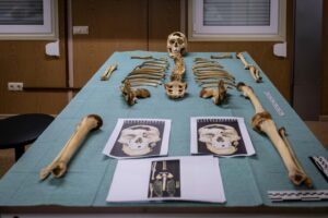 Leaning over the screen, Valentina and Olga examined photographs of objects found near Yevhen Paliokha, a Ukrainian soldier killed