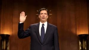 Ousted FBI director James Comey is sworn in during a hearing before the Senate Select Committee on Intelligence on