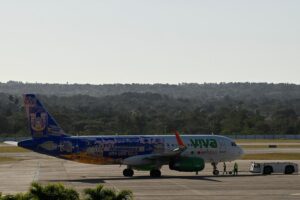 A Viva Aerobus Airline jet is towed at the Jose Marti International Airport as Cuba warned international airlines that