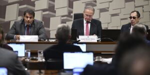 26/02/2026 – 16:14 Geraldo Magela/Agência Senado Parlamentares governistas se aproximam da mesa diretora para protestar após resultado da