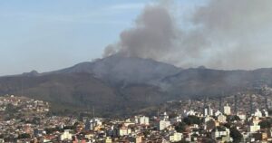 Um incêndio de grandes proporções atinge a Mata da Baleia, na Serra do Curral, em Belo Horizonte, e já